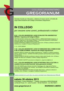 La Giornata di studio, a cura dell'Associazione ex Allievi del collegio universitario Gregorianum, avrà come titolo “IN COLLEGIO. Per crescere come uomini, professionisti e cristiani”.