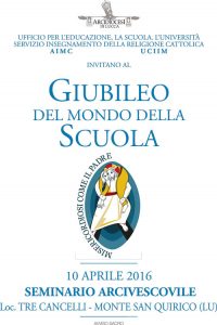 Il 10 aprile Castellani al Giubileo della scuola. La diocesi di Lucca festeggerà il Giubileo della Misericordia dedicato al mondo della scuola. L'evento si terrà domenica 10 aprile al Seminario Arcivescovile.Sono invitati studenti, insegnanti, dirigenti e tutto il personale che ruota attorno alla scuola.